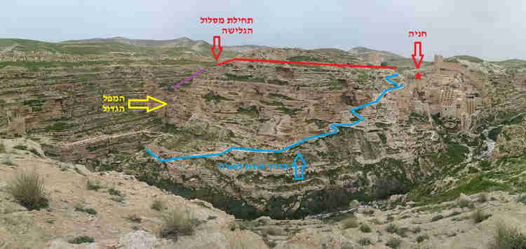 חזרה לרכב: משמאל יש דרך העולה חזרה למנזר, דרכה ניתן גם להגיע לגדה ממול אם השארתם את הרכב ליד התצפית.